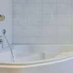 У ванній кімнаті з ванною і душем є фен і рушники.